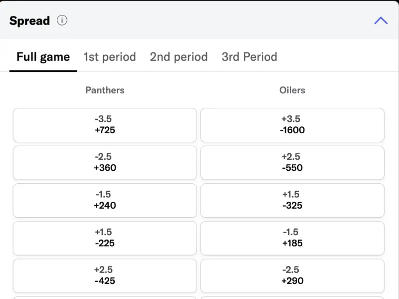 The NHL’s version of a point spread is called the “puck line” and is similar to MLB's run line. Unlike football and basketball, it’s virtually always set at -1.5 for the favorite and +1.5 for the underdog. The juice on these bets is drastically different in each game and will change before the puck drops.