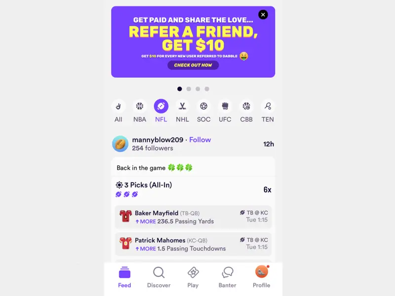 One of the other signature features at Dabble is the engaged and active social community, plus a chat feature where you can sharpen your banter game. It’s available on mobile with a slick and user-friendly interface. If you’re into pick’em games, you’ll love Dabble.
