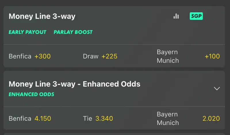 In games that can end in a tie, like NFL contests, if the Detroit Lions (-125) were playing the Green Bay Packers (+115) and the teams tied after overtime, then both sides would push and get their money back. However, in sports with 3-way moneylines like soccer, "tie" is a moneyline option, so a moneyline bet on Manchester United would actually lose if the game ended in a draw. With soccer, especially, it's important to know if you're betting on a 2-way moneyline bet or a 3-way moneyline bet. Payouts for 3-way moneylines are better, but carry more risk of losing, while 2-way moneylines are less lucrative and less risky.