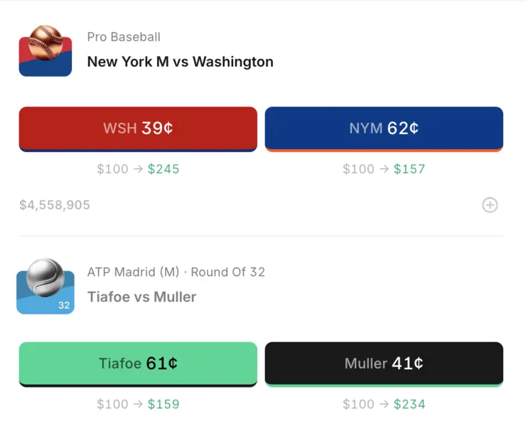 Kalshi is a prediction market platform where participants can simply choose “yes” or “no” on a range of outcomes. Initially focused on big events like the Super Bowl and March Madness, markets have expanded to include single games for major sports. Similar to comparing sports betting odds, users can pick and choose from contract prices for various outcomes. And it's not limited to sports either as you can find election wagers and other political or social markets as well. Read more via Odds Shark's full review of Kalshi.