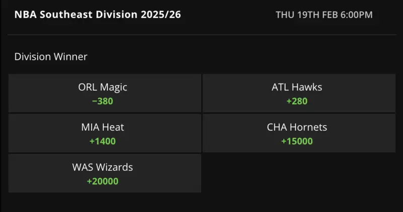 This time of year, you'll find odds for each team to win the NBA Finals, Conference Finals, or their division.