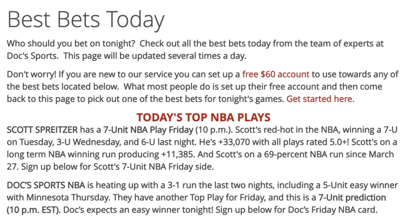 Although the layout and presentation of Doc’s website is outdated, it has a lot of valuable content beyond the subscription service. For instance, you can find a regular stream of sports-related articles, links to videos and a betting advice section. CLICK HERE for my full review of Doc’s.