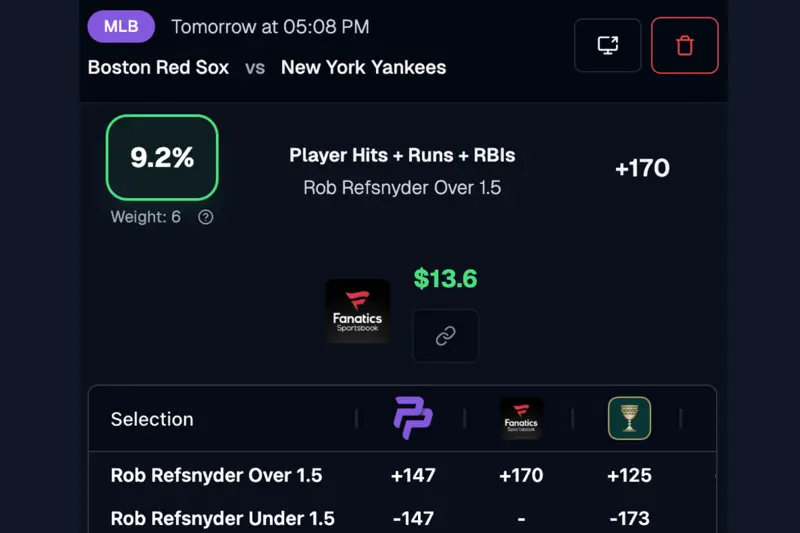 The platform helped me identify several arbitrage betting opportunities, including one for Ben Rice's RBIs in the Red Sox-Yankees AL Wild Card game. One sportsbook had OVER 0.5 set at -190, while another offered +220.