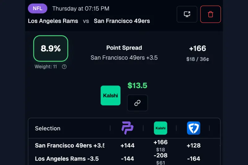 My favorite feature of Prop Professor is its Arbitrage betting tool, which lets you identify odds discrepancies across two sports betting sites to lock in guaranteed profit. If you're not familiar with arbitrage betting, this may sound too good to be true, but Prop Professor makes it happen. Those who enjoy betting on fantasy sites like PrizePicks or Underdog will appreciate real-time optimizer tools.
