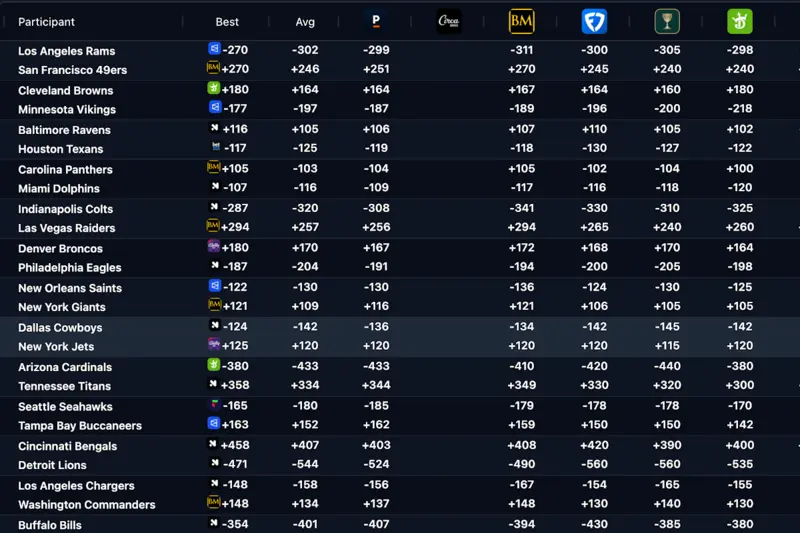 One of the first things I did upon logging in was check out the odds screen (found at the bottom of the web version under "more"). I counted lines for 25 different sportsbooks and exchanges, far more than you'll find in similar resources.