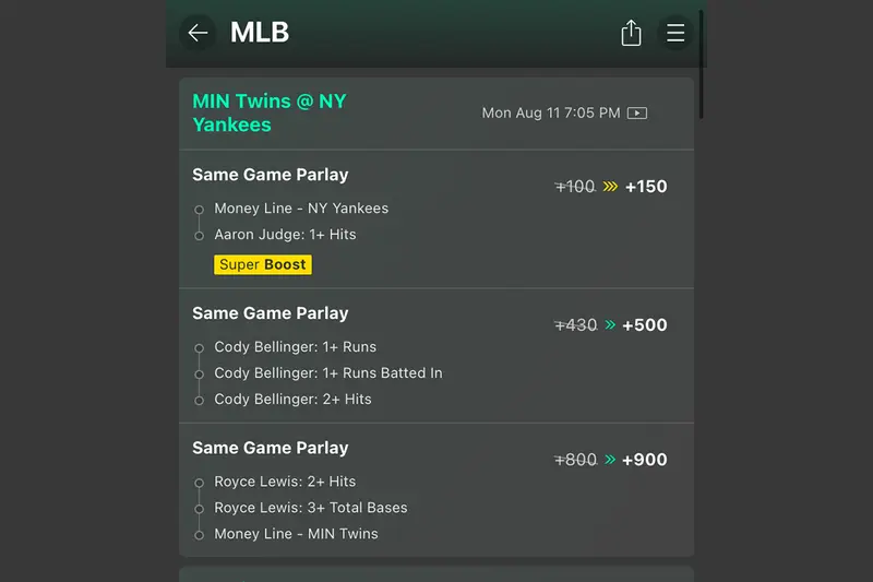 The app has a “news” tab which features articles as well as videos to help you find betting angles. While some apps only allow you to string together Same Game Parlays from one single game, the Same Game Parlay+ option lets you combine props from multiple games. Bet365’s app features one of the more robust lists of betting options that includes more obscure sports like alpine skiing, snooker, and darts.