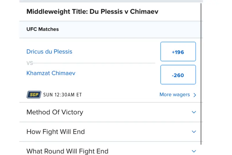 FanDuel's UFC prop selection is limited (only a few alternate round OVER/UNDER props), and the platform lacks odds for international MMA fights.